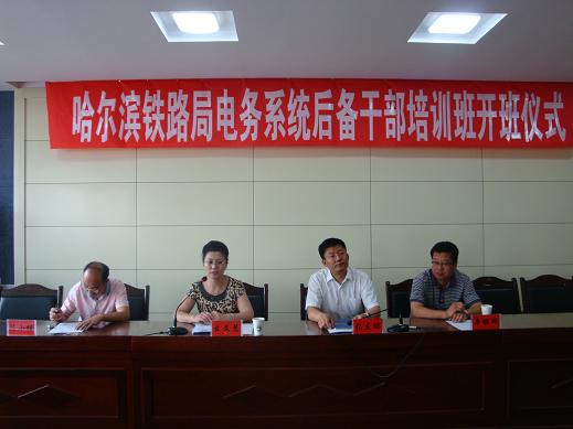 7月6日,哈尔滨铁路局客专新技术骨干培训班在我校自动化学院会议室开班。自动化学院领导、哈尔滨铁路局职教处副处长幺文慧、电务处高级工程师辛丽明以及学院自控系陈永刚副教授、林俊亭老师出席了开班典礼。大会由学院副院长陈小强教授主持。