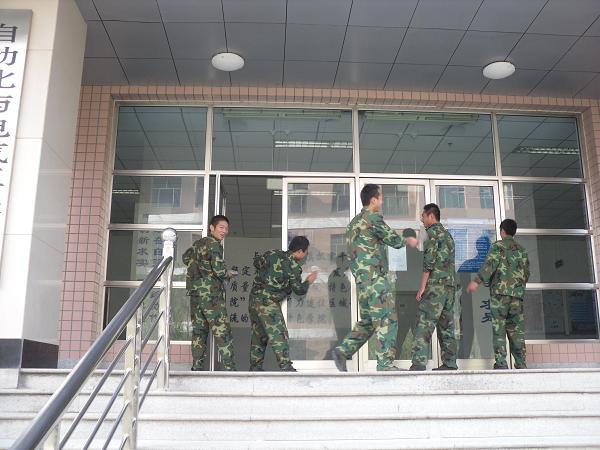 国防生党支部自“创先争优”活动开展以来,组织党员认真学习校党委和院党委有关“创先争优”活动的文件,根据实际制订了本支部活动计划。按照支部活动计划的安排,2010年10月7日国防生党支部利用“国庆节”放假时间组织党员、入党积极分子开展了以“党员服务群众”为主题的义务奉献活动,对自动化学院办公楼进行彻底的卫生打扫。