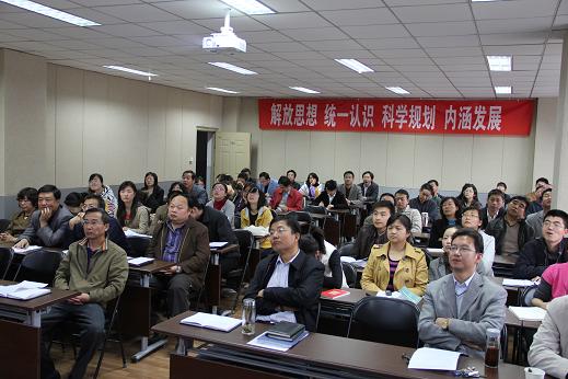 此次会议的主题是“解放思想,统一认识,科学规划,内涵发展”。会上,各位学院领导和系(教研室)主任、教学评价与咨询办公室主任及三位骨干教师作了专题报告,报告涉及了学院教育教学、学科学位建设、专业建设、科研、研究生培养、师资队伍建设、社会服务、思政与团学工作、制度与作风建设等各个方面,每位报告人都进行了认真思考和精心准备,在对学院十一五规划的实施情况和学院现状进行对照分析的基础上,找准存在的问题与不足,本着实事求是、求真务实、内涵发展的原则,就学院十二五期间建设与发展提出了思路和建议。张友鹏院长作了总结讲话,他指出,科学制定学院十二五规划,用以指导学院未来五年的建设与发展具有十分重大的意义,学院在十一五期间取得了长足的发展和可喜的成就,十二五期间将继续进一步解放思想,抢抓机遇,真抓实干,保持学院又好又快发展的良好势头,紧紧依靠全体教职工的聪明才智和辛勤努力,使学院的各项工作再上新台阶。