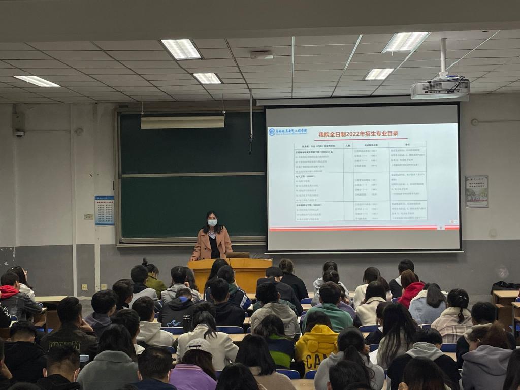 学院研究生工作副院长牛宏侠老师针对考研同学志愿填报、初试复试技巧以及本院研究生科研情况进行讲解。牛院长对同学们提出三点要求:一要充分认识考研的重要意义,考研是高质量就业的重要内容,各位备考同学要着眼长远、持续发力;二要明确报考目标,学生根据复习程度调整志愿填报,确保考研上岸;三要积极调整心态,学习过程劳逸结合,确保长效复习,增加上岸概率。