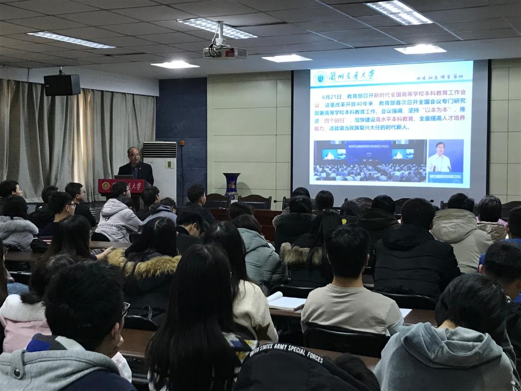 为进一步深入学习贯彻习近平新时代中国特色社会主义思想及全国教育大会、教育部本科教育工作会议精神,落实好学校2018年本科教育工作会议有关要求,教育引领广大学生成为担当民族复兴伟业的时代新人,12月20日下午,自动化学院院长陈小强为本院学生作了题为“坚定理想信念,肩负时代重任,珍惜学习时光,提升综合素质”——学习贯彻全国教育大会精神专题报告,学院各专业各年级学生代表100余人参加。