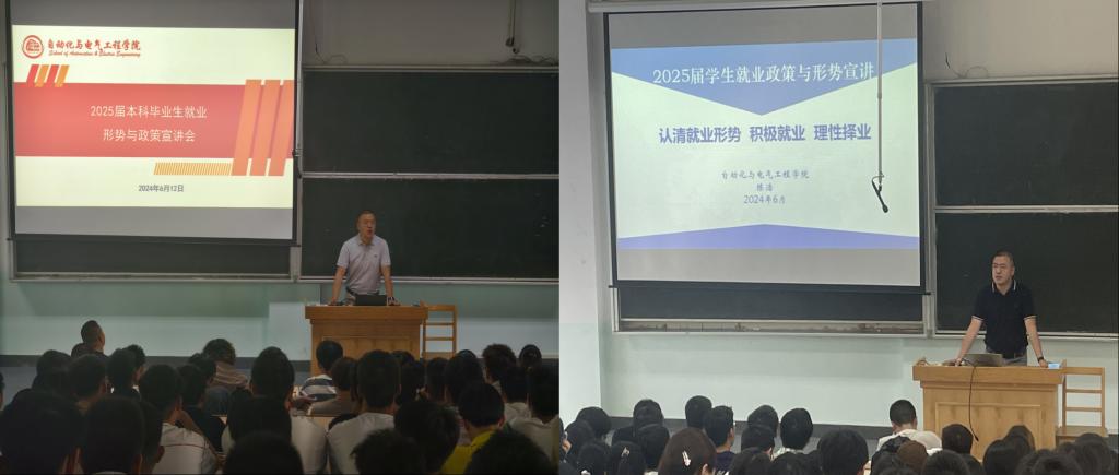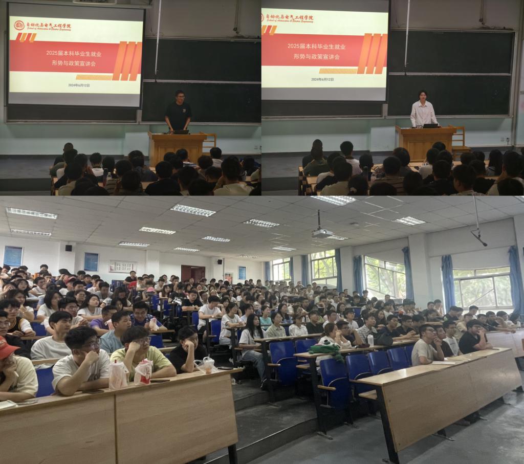 为引导学生找准自身定位,做好职业规划,树立理性就业观,充分认识就业形势与政策,积极对接用人单位需求新趋势与变化。6月12日-14日,自动化学院分别在学校7教2403和1401教室分专业开展了就业形势与政策宣讲会。学院党委副书记、副院长陈浩,年级辅导员及25届各专业本科生参加了宣讲,宣讲会由学办主任马腾老师主持。