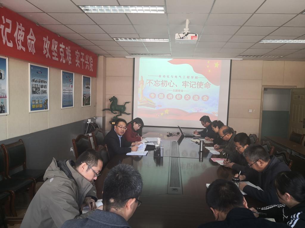 10月16日下午,自动化学院在学院706会议室召开了“不忘初心、牢记使命”主题教育专题调查研究成果交流会。学院领导班子成员、各系(室)主任、各办公室主任参加了此次交流会。学校主题教育指导联络组第二组周涛、张晓丽现场交流指导。