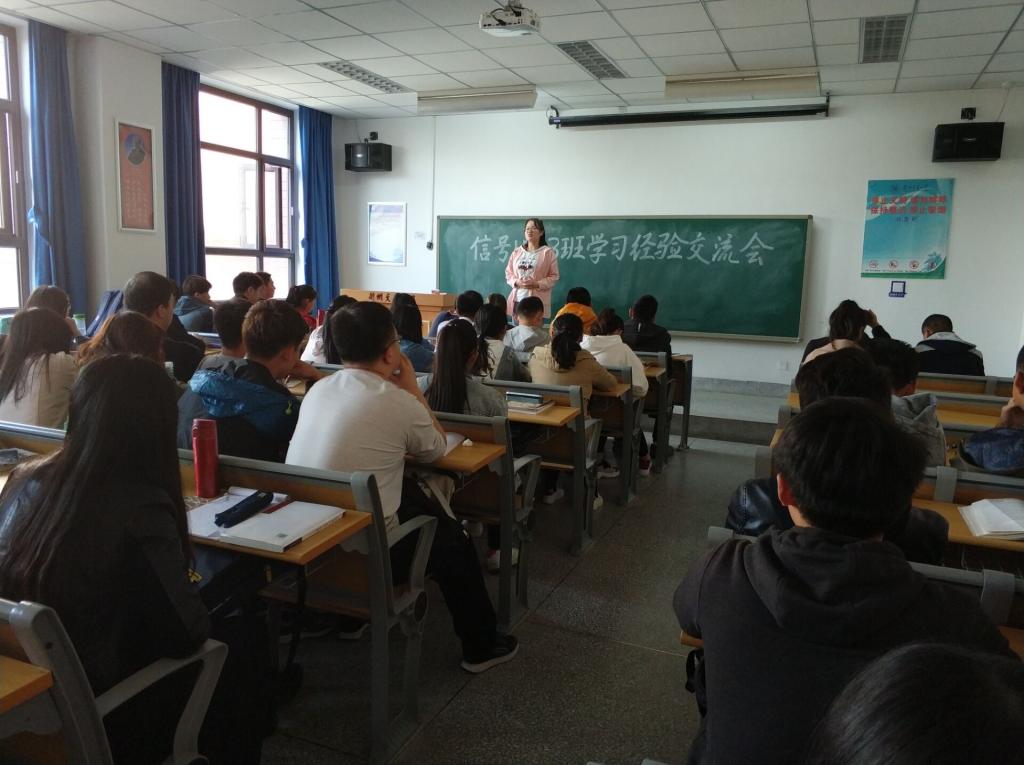 为进一步激发学生们的求知热情,优化学习方法,促进良好学习习惯的养成,促使同学们更好的明确学习目标,自动化学院信号5个班级先后于3月16日至3月23日以班级为单位开展了 “学习经验交流会”活动。首先,各班班主任针对成绩分析总结了大学期间本班同学的学习情况,肯定了大家两年多的努力和取得的成绩,同时指出了存在的问题,希望大家能够好好总结经验,汲取教训。活动期间,各班级积极组织,邀请学院部分老师和本专业在校表现优秀的大四学生传授学习经验,为他们答疑解惑。大四毕业班的同学为同学们讲述了自我成长之路,分享了学习、生活经历与体验,鼓励同学们抓住时机、积极参与各项比赛,以开拓视野,丰富自身实战经验。随后,大三学生就日常学习、生活中遇到的疑惑、难题和即将步入的大四生活中对学习和就业方向和考研问题存在的疑惑进行提问,在场的老师、同学针对每个问题都给予细致、认真的解答。