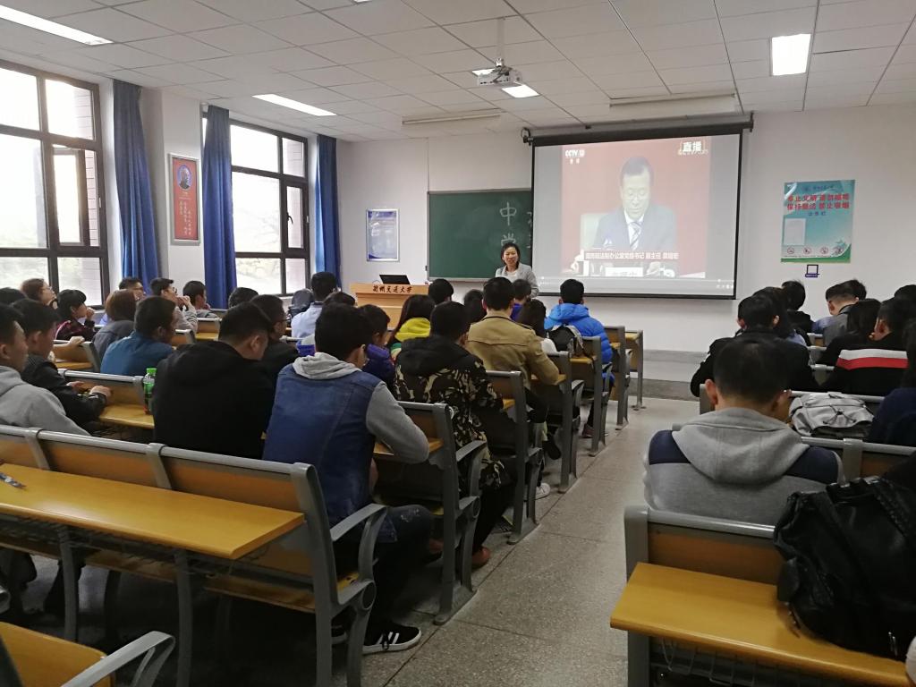 为积极响应学校党委的号召,深刻理解党的十九大报告精神,11月7日下午,自动化与电气工程学院自动化第三学生党支部在二教410教室开展了中共十九大学习交流会,支部全体党员认真学习了习近平总书记所作的重要报告。