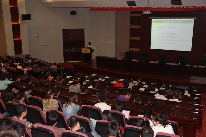 随后,主管研究生的副院长陈小强教授介绍了我院在2013届全日制硕士研究生学位论文的开题、中期进展、形式审查、重复率检测、匿名外审及匿名答辩等方面采取的创新性措施以及取得的喜人成绩,指出了我院硕士研究生学位论文中存在的问题,并希望2010级研究生永记师恩,始终铭记交大尚德励志,博学笃行的校训,坚守学院修德、博学、求是的院训,历练自我,追求卓越,以优秀业绩报答师恩,感谢母校。研究生代表杨蕾、王彦快、李军丽、季聪、郭琳5位研究生分别就如何做好开题、|进展报告、学位论文的格式、匿名外审准备”、科研论文写作五个方面介绍了自己的经验,分享了自己的体会。优秀硕导代表李军教授从研究生的基础学习、选题、查阅文献、提高创新能力、提升研究结果以及如何撰写论文等方面介绍了自己多年指导研究生宝贵的经验,他强调做学问要有兴趣这个动力、要有求实的态度、要有创新这个核心,要坚持勤奋的道路。优秀科研工作者田铭兴教授做了题为“珍惜时间,努力成才”精彩发言。