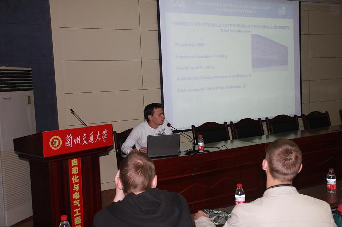 10月23日,乌克兰克列门丘格国立大学Mamchur Dmytro博士一行5人到我校交流,Mamchur Dmytro博士在自动化学院7楼会议室做了题为“MOTOR’S (IM) DIAGNOSTIC BASED ON INSTANTANEOUS POWER (IP) SPECTRA ANALYSIS”的学术报告。学院交通信息及控制专业的的研究生70余人参加了本次学术交流活动。