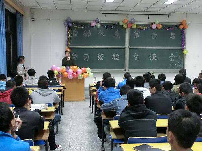 10月18日晚,由自动化系分会承办的自动化学院自动化系第六届学习经验交流会在8教1515教室成功举办。本次活动邀请到自动化学院在校研究生代表、优秀本科生代表,优秀学生干部等为自动化系12级新生介绍了大学期间的学习规划、目标设定、时间管理、宿舍生活等方面的经验。自动化专业的110余名12级新生参加了此次学习经验交流会。