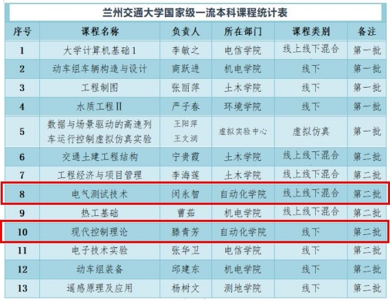 我院新增两门国家级一流本科课程