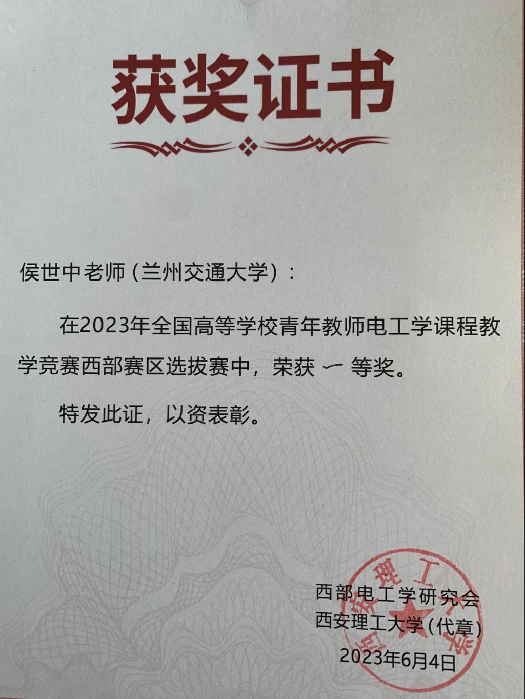 我院教师在全国高等学校青年教师电工学课程西部赛区教学竞赛中获佳绩