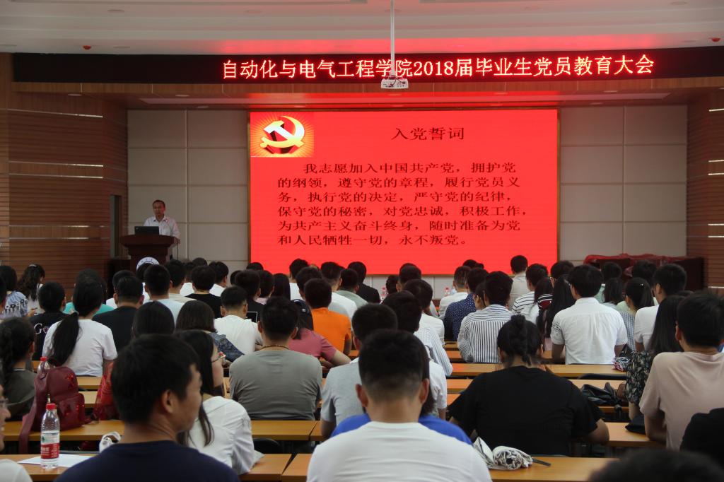 6月4日下午,自动化与电气工程学院在二教学术报告厅举行2018届毕业生党员教育大会。教育大会旨在加强毕业生党员教育,进一步提高毕业生党员党性意识和组织观念,充分发挥党员在毕业离校过程中的先锋模范作用,确保2018届毕业生党员组织关系转移工作顺利完成。学院领导班子全体成员、学院党委...
